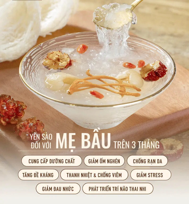 Theo chuyên gia dinh dưỡng, yến sào chứa nhiều dưỡng chất đặc biệt có lợi cho sự phát triển toàn diện của thai nhi và sức khỏe của mẹ. Tuy nhiên, trong 3 tháng đầu tiên thai kỳ, không khuyến khích mẹ bầu dùng yến sào hoặc các chế phẩm từ yến.