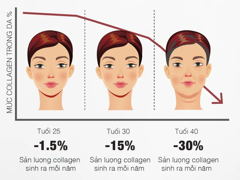 Khi lượng collagen suy giảm, da tiếp xúc liên tục với tia UV mạnh, nhiệt độ cao hàng ngày và môi trường khô, độ đàn hồi của da giảm và quá trình lão hóa diễn ra nhanh hơn. Đây cũng là nguyên nhân gây ra nọng cằm, da chảy xệ, khiến bạn trông già hơn.