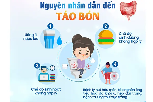 Táo bón là một dạng rối loạn đường tiêu hóa, dẫn đến tình trạng đi ngoài khó, phân không đều kèm với cảm giác đau và cứng. Nguyên nhân gây táo bón chủ yếu đến từ chế độ dinh dưỡng và thói quen sinh hoạt hàng ngày. Chế độ dinh dưỡng bổ sung giàu chất đạm, chất béo nhưng lại nghèo chất xơ thì nguy cơ bị táo bón sẽ tăng cao.