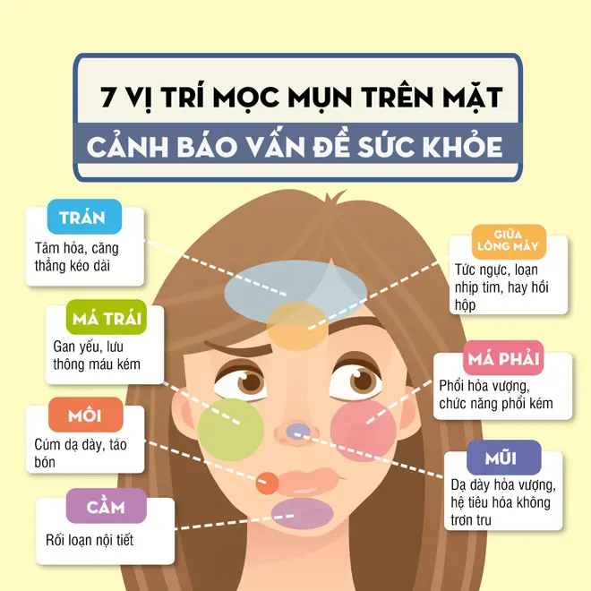 Việc sử dụng các loại kem bôi ngoài da khi bị mụn chỉ cải thiện được 20% tình trạng mụn. Mỗi vị trí mọc mụn trên khuôn mặt đều hàm chứa một vấn đề liên quan đến sức khỏe bên trong của từng cơ quan.