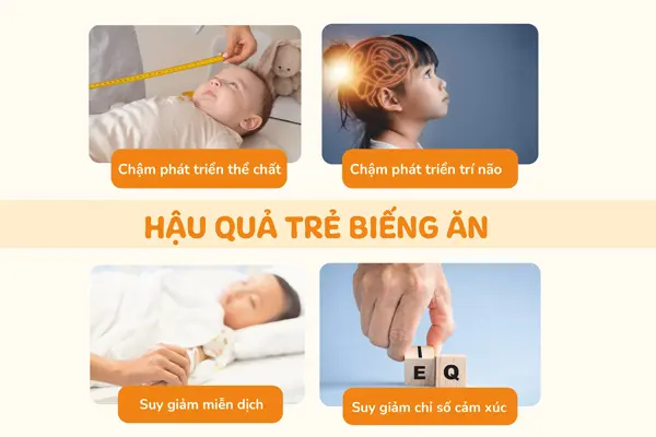 Khi trẻ biếng ăn lâu dài sẽ không đáp ứng đủ dưỡng chất theo nhu cầu của cơ thể để phát triển thể chất và trí tuệ. Chậm lớn, còi xương, trí não kém phát triển là những hệ quả nghiêm trọng của chứng biến ăn. Tác dụng của yến sào đối với trẻ biếng ăn chính là bổ sung dưỡng chất, giúp bé ăn ngon miệng hơn.