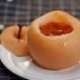 Bước 3: Cho tổ yến và phần lê thái hạt lựu bỏ vào trong ruột trái lê quả lê, đậy nắm lê lại, đem bỏ vào tô. Cho tô vào nồi chưng và tiến hành chưng cách thủy khoảng 25-30 phút.