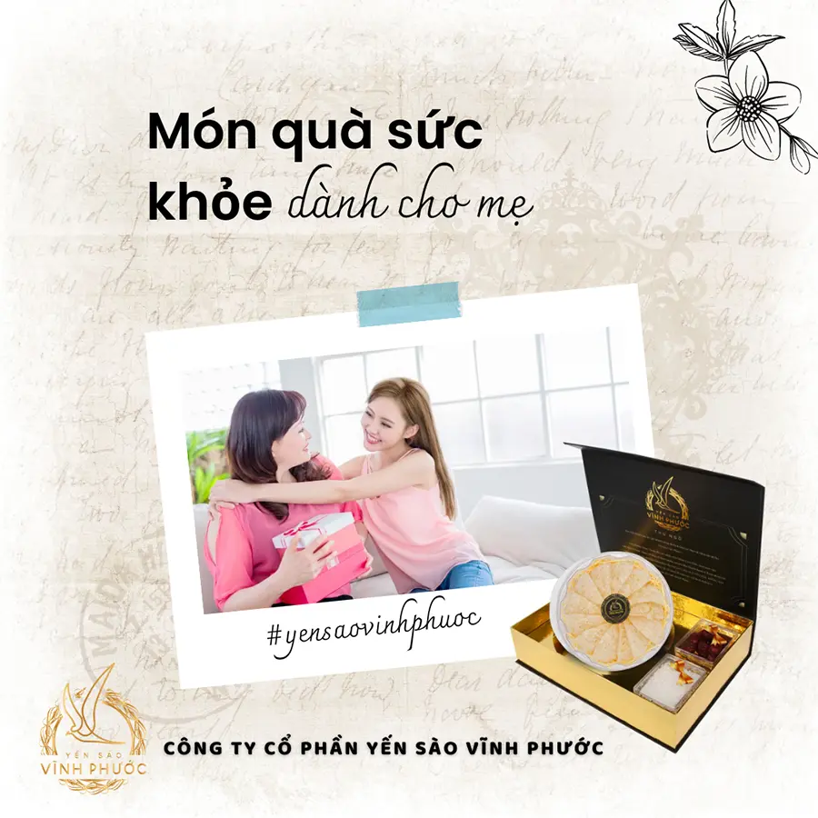 Bạn nghĩ sao về gợi ý những món quà tặng sức khỏe dành cho mẹ trên đây về sức khỏe? Liên hệ ngay với Yến Sào Vĩnh Phước để chọn tổ yến giàu chất dinh dưỡng cho mẹ yêu vào bất kỳ dịp nào nhé.