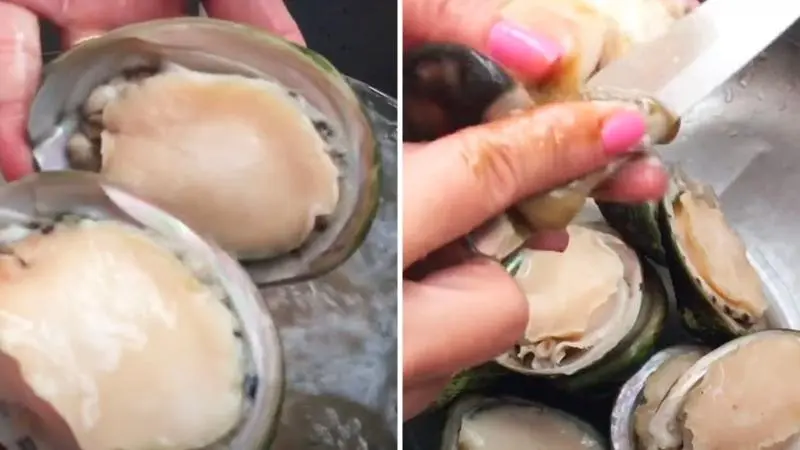 Bước 2: Bào ngư đem tách bỏ vỏ lấy ruột, sau đó đem rửa sạch và ướp cùng bột canh, hạt nêm, dầu mè và tiêu trong vòng 20 phút. Sau đó, cho bào ngư vào nồi nước ninh xương gà nấu với lửa nhỏ trong khoảng 30 phút.