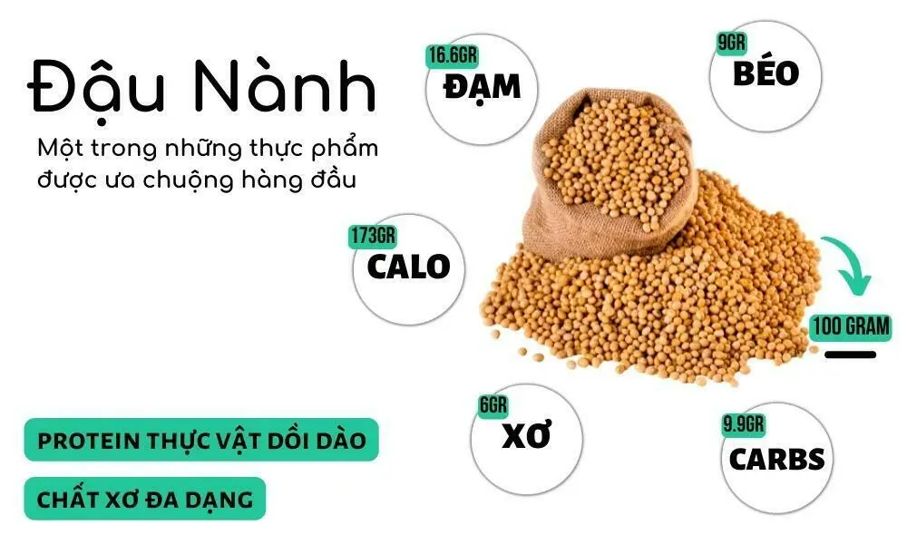 Đậu nành là thực phẩm cung cấp đạm thay thế thịt cho người ăn chay, bởi trong đậu nành chứa nguồn đạm vô cùng lớn. Trung bình trong 100g đậu nành chứa: