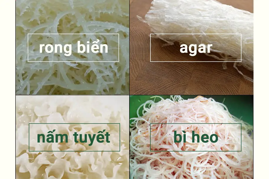Ngoài ra, còn 1 cách để làm tổ yến thô giả khác tinh vi hơn đó là trộn sợi yến thật với các nguyên liệu khác. Trước tiên người ta sẽ phun sương vào tổ yến thật để rút sợi yến thật ra. Tiếp đến sẽ thay thế bằng các nguyên liệu rẻ tiền hơn như mủ trôm, nấm tuyết, rau câu, bún tàu (giống yến nhất),… Sau đó ngâm tổ yến trong nước đường, bột hay muối mục để tăng thêm trọng lượng. Trong quá trình ”chế tạo tổ yến thô” cũng sẽ cho thêm lông chim, bụi bẩn, tạp chất vào để ngoại quan giống với tổ yến thô thật.