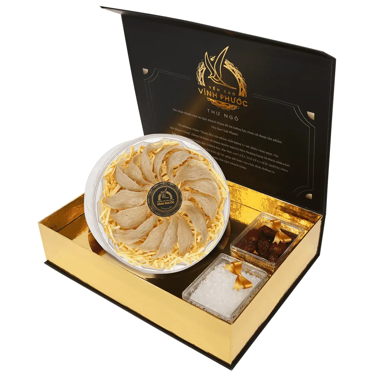 Được sử dụng 100% tổ yến thô rút lông, là loại tổ yến đã được làm sạch lông thủ công nhưng vẫn còn giữ nguyên hình dáng tổ yến thô đẹp mắt và còn chân yến. Sau khi lựa chọn những tổ yến sạch đẹp nhất trong nhà yến người thợ làm sạch tổ yến chỉ được phun sương nhẹ vào tổ yến cho tổ yến hơi mềm ra sau đó tỉ mỉ nhặt từng sợi lông kim nhỏ nhất, hạn chế tối đa can thiệp nước, điều đó giữ nguyên được hình dáng tổ yến rút lông gần giống như tổ yến thô ban đầu. Quá trình làm sạch của tổ yến rút lông đòi hỏi người thợ phải có tay nghề cao, và thời gian làm sạch cũng mất nhiều thời gian và tỉ mỉ. Thích hợp biếu tặng hoặc sử dụng trong gia đình.