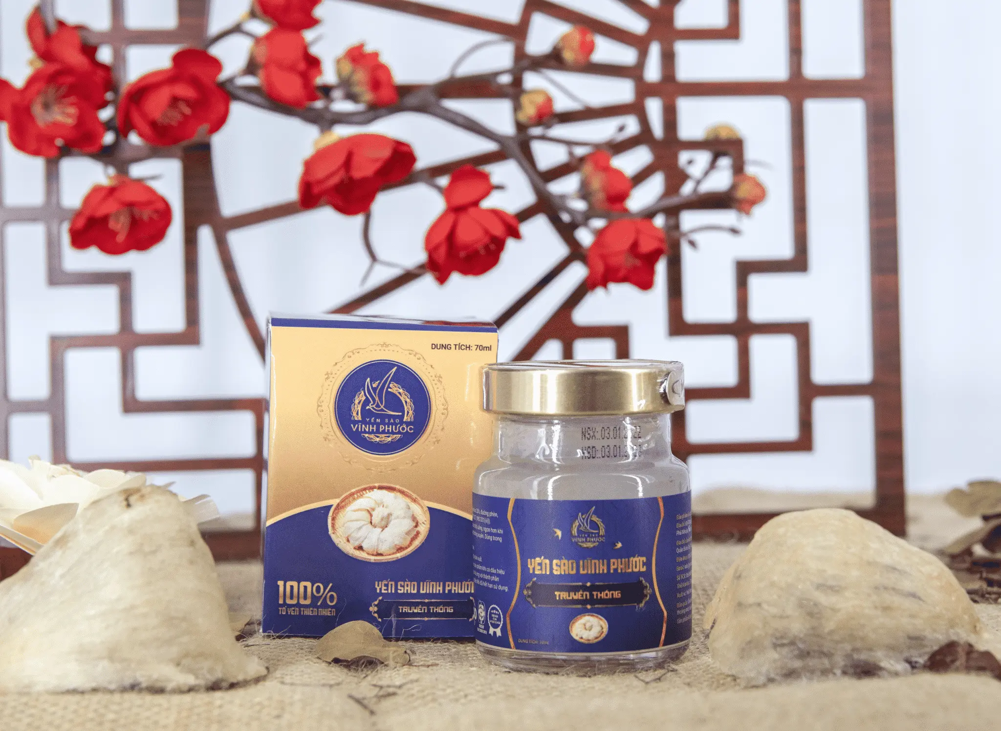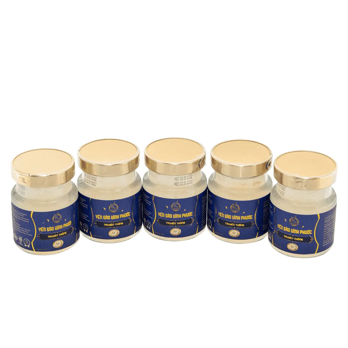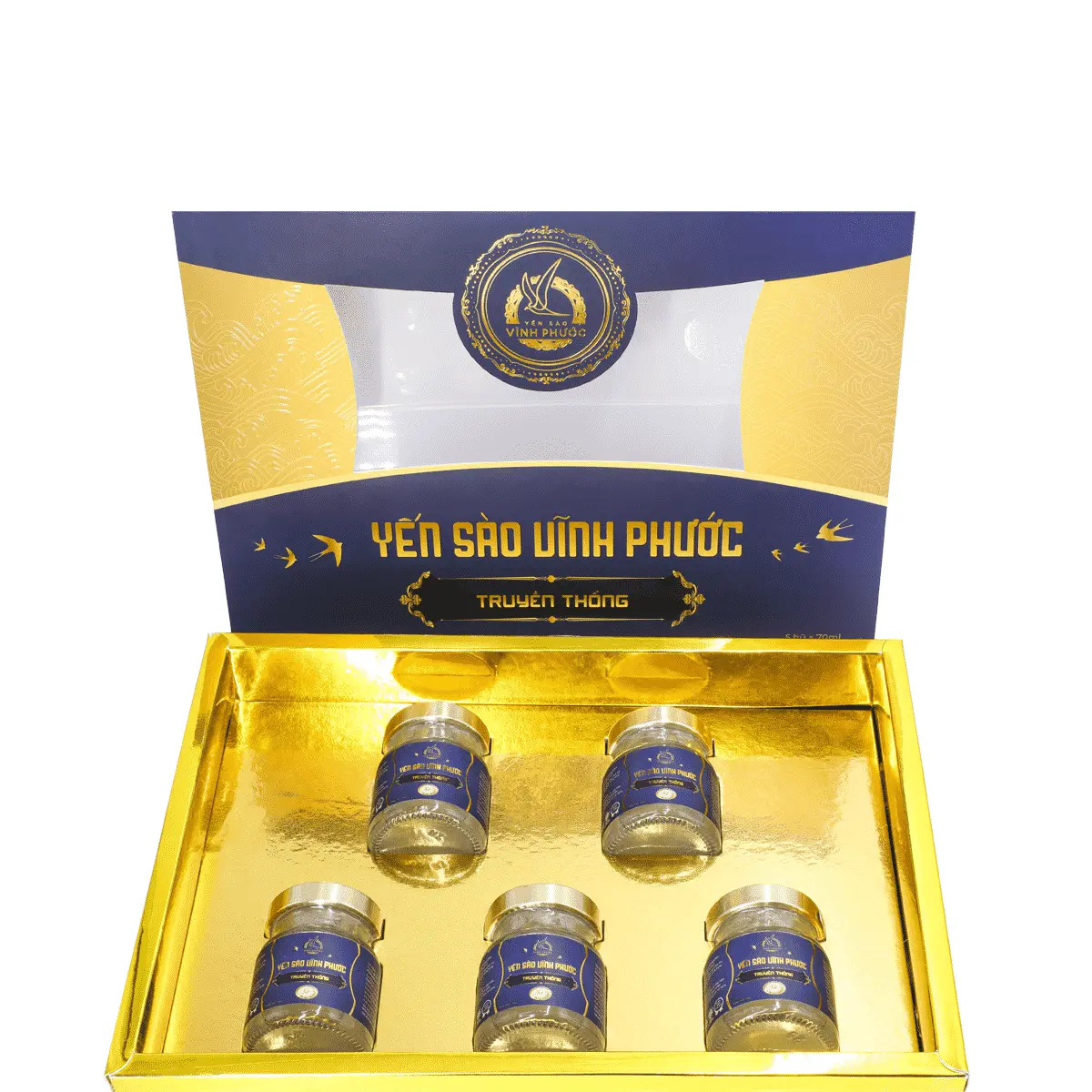 Đóng gói: Hộp 1 hũ / 5 hũ Yến Sào Truyền Thống Chưng Đường Phèn Vĩnh Phước 70ml
